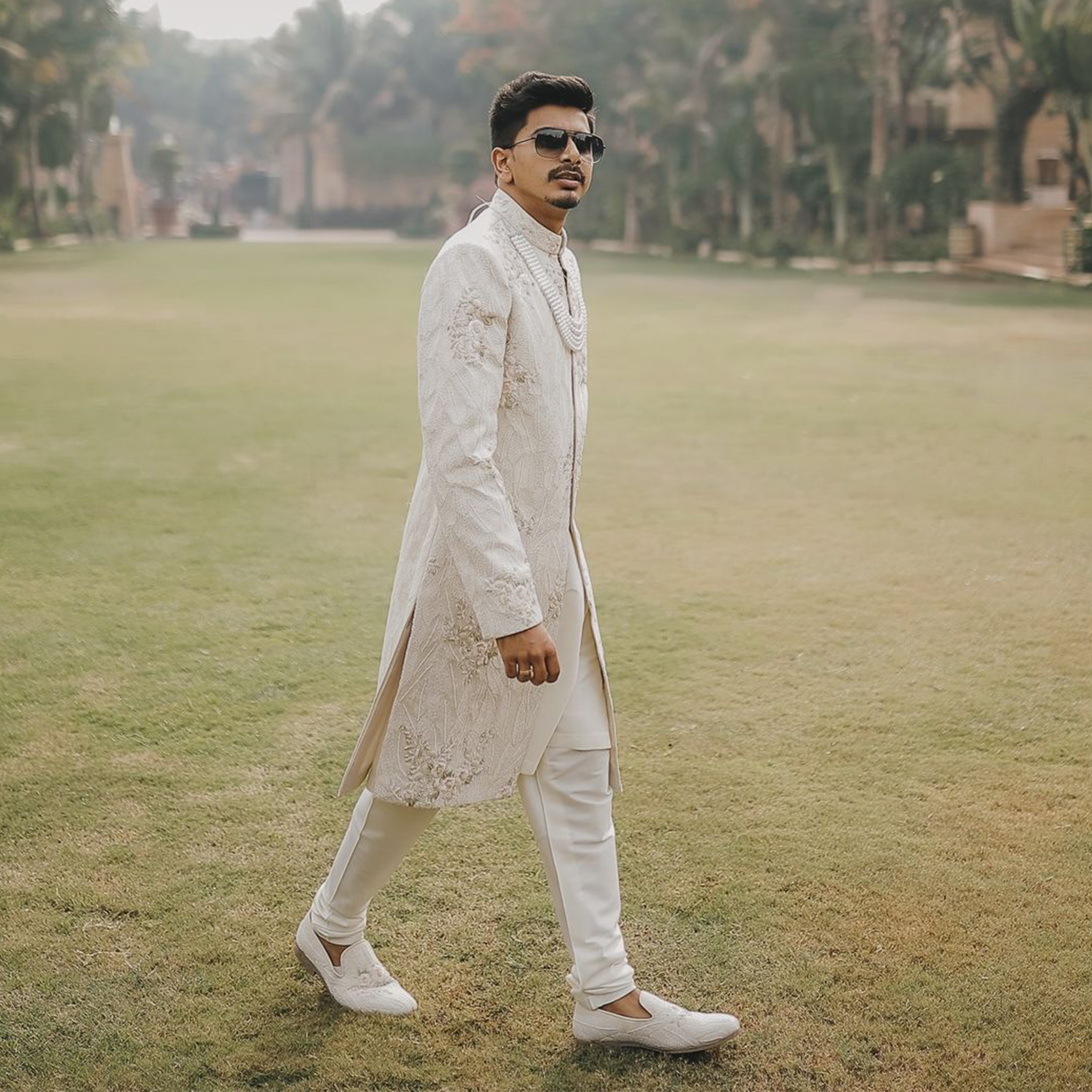 Intricately detailed thread work with a perfectly balanced color palette- get ready to be a dapper in the upcoming saga of weddings. Deck up in complete bespoke extravagance, indomitably resplendent, and magnificently charming, deck up in perfection.